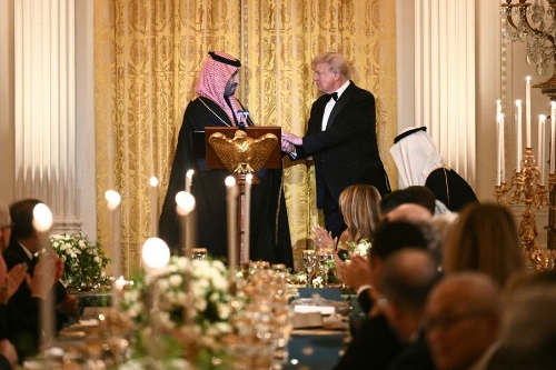 وأعلن ترمب أنه قرر تصنيف السعودية حليفاً رئيساً من خارج حلف شمال الأطلسي (الناتو)، خلال استضافته الأمير محمد بن سلمان على مأدبة العشاء.