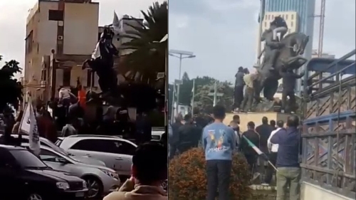 نشرت المنصات الإعلامية الرسمية لمحافظة طرطوس نحو الخامسة والنصف من مساء اليوم الثلاثاء، 25 تشرين الثاني 2025، كلمة مصورة لمدير جمعية الشيخ صالح العلي، الشيخ أحمد بلال، وذلك من أمام تمثال الشيخ المجاهد صالح العلي أحد أبطال استقلال سوريا عن الاستعمار، والذي تعرض تمثاله في طرطوس في وقت سابق اليوم، لمحاولة هدفت إلى تخريبه وإسقاطه قبل أن يتم تدارك الأمر ومنع المرتكبين من إكمال الاعتداء. وجرى الاعتداء على هذا النصب التذكاري بالتزامن مع الاحتجاجات والمظاهرات المضادة التي خرجت في الساحل السوري نهار اليوم. وأكد مدير الجمعية بأنه لا صحة لإسقاط التمثال ولكنه أكد في الوقت نفس صحة حادثة الاعتداء على التمثال ومحاولة تخريبه من قبل بعض العابثين وأنه تم إيقافهم عن إكمال الإضرار بالتمثال. وكانت انتشرت في وقت سابق مقاطع مصورة متداولة تظهر شباناً يعتلون التمثال ويحاولون خلخلته لإسقاطه عن قاعدته بهدف تحطيمه. ولم يتم حتى مساء اليوم الثلاثاء التحقق من هوية هؤلاء المخربين المعتدين على هذا الرمز الوطني. ولم تصدر على الفور تعليقات من السلطات الأمنية المختصة بشأن تحقيق بالاعتداء، حتى وقت إعداد هذا الخبر. وقبل نشرها كلمة مدير جمعية الشيخ صالح العلي نشىرت محافظة طرطوس في وقت سابق بياناً مقتضباً قالت فيه: «تنفي الجهات المعنية في محافظة طرطوس ما يتم تداوله على بعض منصات التواصل الاجتماعي بشأن خلع أو إزالة تمثال الشيخ صالح العلي، وتؤكد أن التمثال ما يزال في مكانه دون أي تغيير، داعيةً إلى التحقق من المعلومات قبل نشرها وعدم المساهمة في تداول الشائعات».
