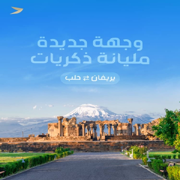 أعلنت فلاي شام عن بدء تشغيل رحلاتها بين حلب ويريفان اعتباراً من الشهرالقادم، وتأتي أهمية هذه المحطة لأنها ستساهم في تسهيل حركة السفر