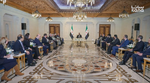 عقد الرئيس أحمد الشرع اليوم في قصر الشعب بدمشق جلسة مع ممثلين عن شركتي شيفرون الدولية وباور إنترناشيونال القطرية القابضة، بحضور وزير الخارجية والمغتربين أسعد حسن الشيباني، ووزير الطاقة محمد البشير، والرئيس التنفيذي للشركة السورية للبترول يوسف القبلاوي.