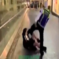 وتظهر المرأة، التي لم يتم الكشف عن اسمها، وهي تحاول الدفاع عن نفسها ممسكة بساقي الحارس للوقوف، قبل أن يصرخ عليها «ابتعدي عني» ويسحبها من ساقيها إلى الخارج.