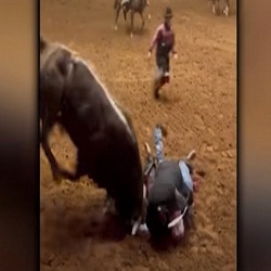 أصيب 15 شخصاً في المكسيك بعدما هاجم ثور هائج في مسابقة «روديو» الجمهور في منصة المتفرجين. ووقعت الحادثة في بلدة تيريبيتيو ببلدية موريليا بولاية ميتشواكان المكسيكية. ويظهر في الفيديو ثور كبير الحجم يصطدم بالسياج المعدني المحيط بساحة النزال، مطيحاً بالمتسابق الذي يركبه. وتوجه الثور الهائج لمنطقة كبار الشخصيات مهاجماً الجمهور فيها. وقالت تقارير محلية إن 15 شخصاً تعرضوا لإصابات خطيرة، وعولج عدد منهم في مكان المسابقة، بينما نقل بعضهم للمستشفيات القريبة. وأرجع عدد من الجمهور وقوع الحادثة إلى استهتار المنظمين بمعايير السلامة والأمان الخاصة بمثل هذه المسابقات، قائلين إن الأسوار والحواجز لم تكن متينة.