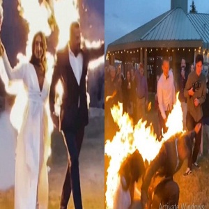 صدم العروسان غابي جيسوب وأمبير ميشيل الحضور بعد أن قاما بإضرام النار بأنفسهما خلال حفل زفافهما، بمغامرة جريئة للغاية.