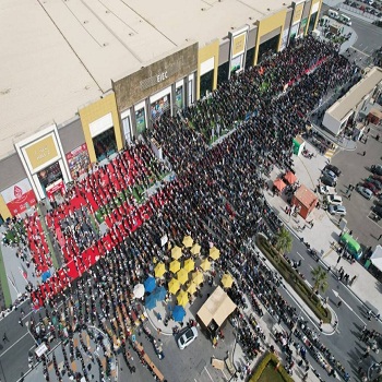 آلاف من البشر في مشهد مهيب. الصورة مأخوذة من مسافة كبيرة. الرؤوس أكثر من أن تعد. الزحام لافت، لكن اللافت أيضاً أنها على هيئة صفوف. مزيد من التدقيق، مع التكبير، يتضح أن الصورة لصلاة تؤديها الجماهير الغفيرة