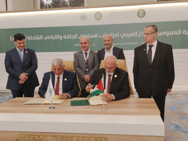 على هامش اجتماعات الجمعية العمومية لمنظمة المركز العربي لدراسات المناطق الجافة والأراضي القاحلة "أكساد" في المملكة العربية السعودية – الرياض، وقع الدكتور نصر الدين العبيد مدير عام منظمة "أكساد" ومعالي البروفيسور رزق سليمية وزير الزراعة في دولة فلسطين، مذكرة تفاهم استراتيجية تهدف الى تمتين وتعزيز وتطوير علاقات التعاون العلمي والفني والتقني بين الطرفين في المجالات ذات الاهتمام المشترك، لتحقيق الاستفادة القصوى من التقدم العلمي والتقنيات الحيوية، وتطبيق الادارة السليمة للموارد الطبيعية والحفاظ على البيئة طوير القدرات الفنية، و لتحقيق المنفعة المتبادلة والاستفادة من الخبرات والامكانيات المتوفرة لدى الطرفين، وتوظيفها لخدمة القطاع الزراعي وتحقيق التنمية الزراعية المستدامة في الوطن العربي، حضر حفل توقيع الاتفاقية سعادة سفير دولة فلسطين في الرياض أ. باسم الاغا والدكتور رائد الجبوري ممثل الأمين العام لجامعة الدول العربية – مدير إدارة الاتحادات والمنظمات العربية.