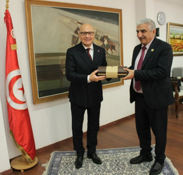 استقبل وزير الفلاحة والموارد المائيّة والصيد البحري التونسي السيد عبد المنعم بلعاتي الدكتور نصر الدين العبيد المدير العام لمنظمة المركز العربي لدراسات المناطق القاحلة والأراضي الجافة "اكساد". وخلال اللّقاء، أطلع السيد الوزير مدير عام "أكساد" على التحدّيات التي تواجه قطاعي الزراعة والمياه في تونس جراء انحباس الأمطار، مؤكّدا أنّ استراتيجيّة وزارة الفلاحة ترتكز بالأساس على الصّمود والاستدامة والاندماجيّة، كما أضاف أنّ الوزارة تعمل على تكثيف الزراعات السقوية خاصة في قطاعي الزيتون والحبوب لبلوغ تحقيق الاكتفاء الذاتي في قمح الصلب مع العمل على تعزيز صادرات زيت الزيتون والتمور، داعيا الى تطوير سبل التعاون المشترك بين الوزارة والمركز خاصة في ظل الشح المائي ومتطلبات المرحلة لتحقيق الأمن الغذائي. من جهته، أشاد المدير العام لمنظمة المركز العربي لدراسات المناطق الجافة والاراضي القاحلة (اكساد) بمستوى التنظيم المحكم الذي شهده المنتدى المتوسّطي الخامس للمياه الذّي انعقد في تونس من 5 الى 7 شباط 2024، مهنأ السيد الوزير بنجاح هذا المنتدى. كما جدّد الدكتور العبيد استعداد المركز العربي (اكساد ) لتعزيز التعاون المشترك مع الوزارة والتسريع في وتيرة إتمام المشاريع الثنائية في المجال الزراعي.